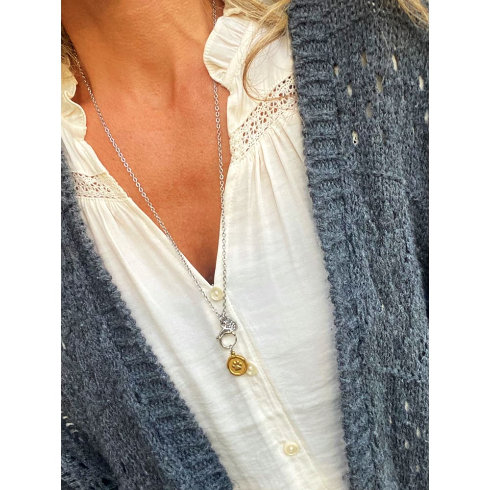 Includes a REMOVABLE round paw print charm hanging from our versatile circular O~ring. You can easily swap for another pendant.