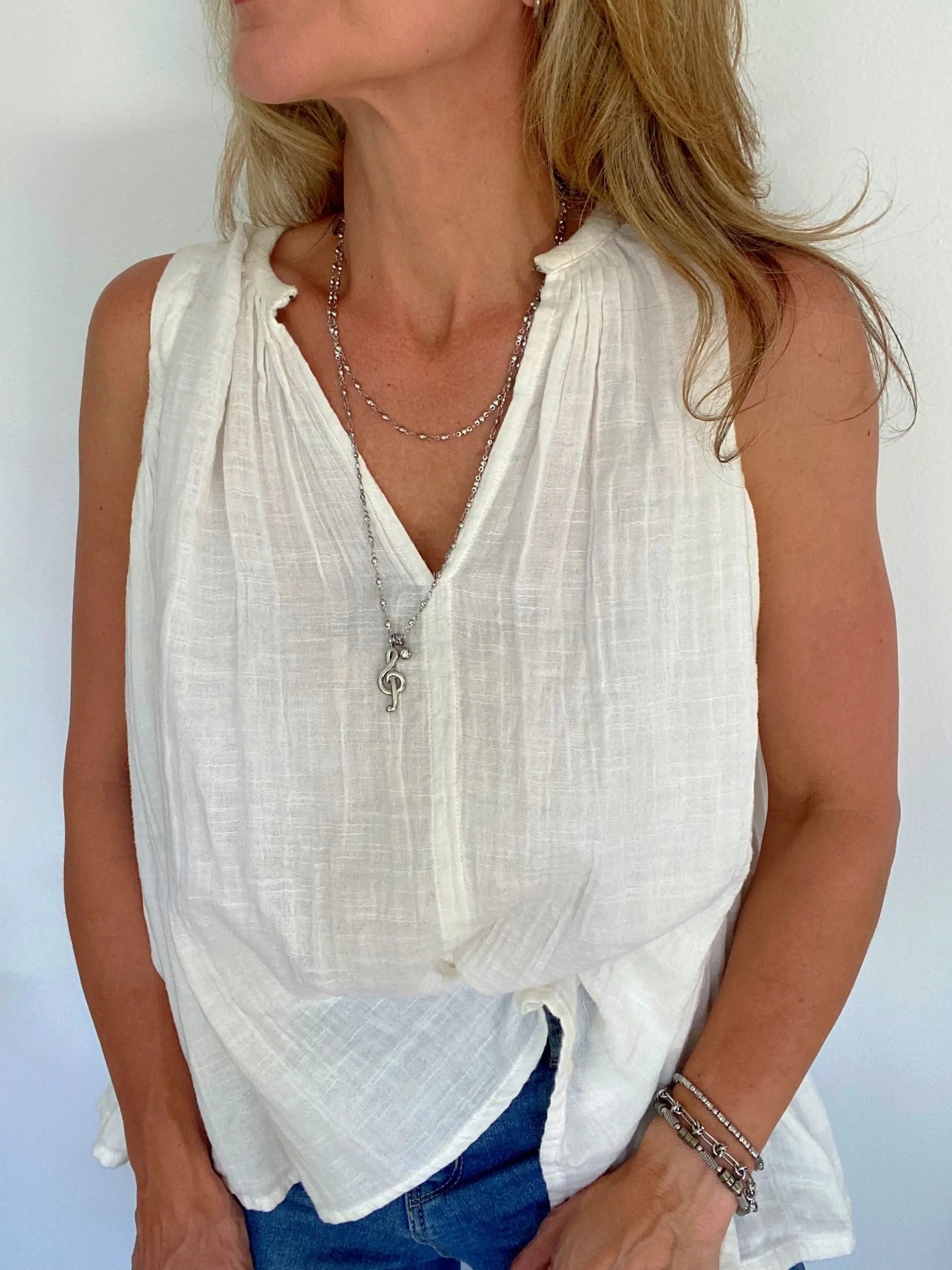 Show off your passion for music with our latest treble clef pendant necklace. Perfect for outdoor summer concerts or any music venue.